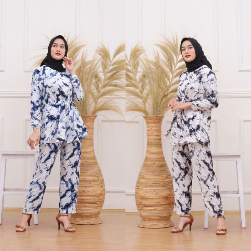 Name: Setelan Baju Celana Panjang Tiedye Set Shibori Tali Nyaman Bahan Adem Dipakai Baju Pergi Santai